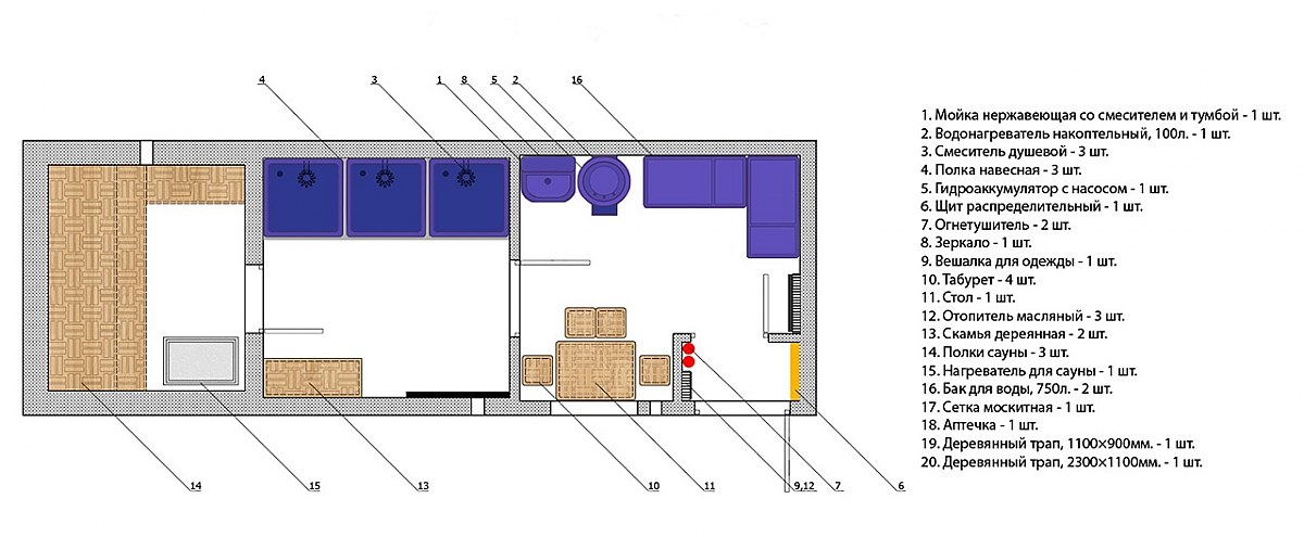 Вагон-дом сауна с душем 8000х2500 мм: стандартизация
