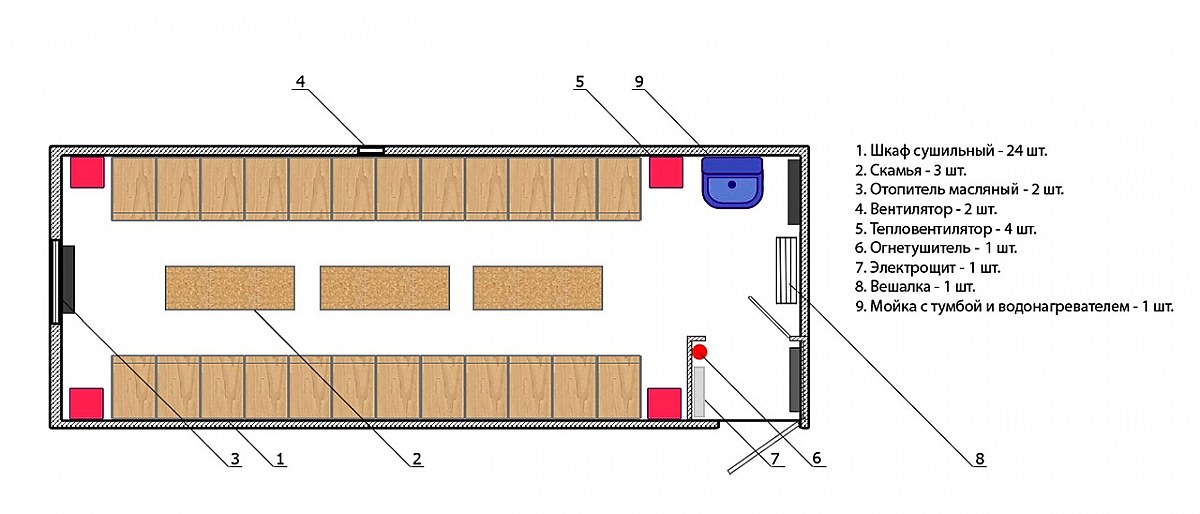 Вагон-сушилка позволяет обеспечить комфортные условия работников, соблюсти требования по Охране труда, быстро и качественно просушить одежду (в том числе, промасленную) персонала при проведении следующих видов работ: